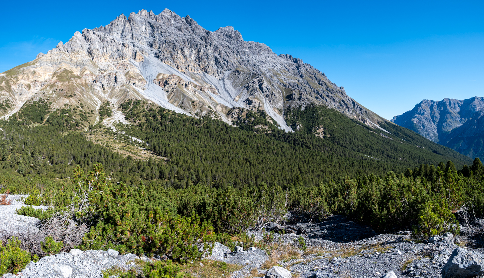 Das Val Mingèr ist Teil des Schweizerischen Nationalparks und tatsächlich lief uns mitten im Wald auch ein Ranger über den Weg.