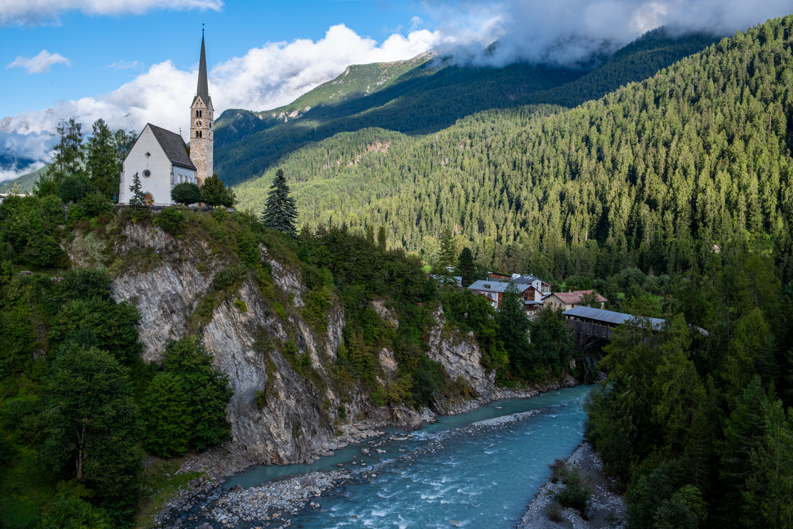 Am zweiten Tag strömte es vom Himmel und wir erledigten ein paar Dinge mit Bus und Bahn. Am Abend klarte es auf und wir unternahmen einen Spaziergang durch und um Scuol.